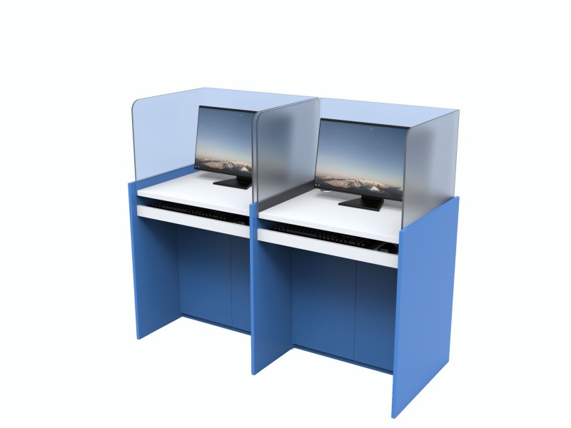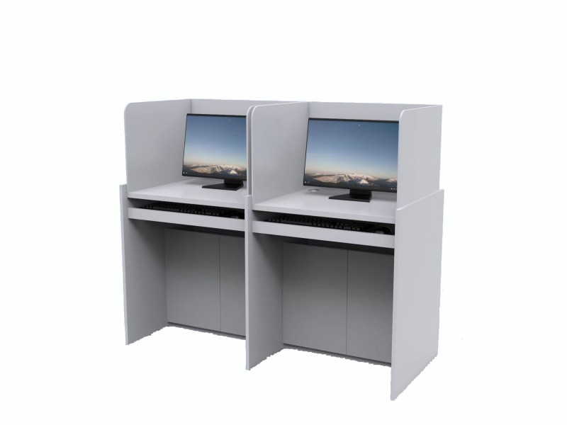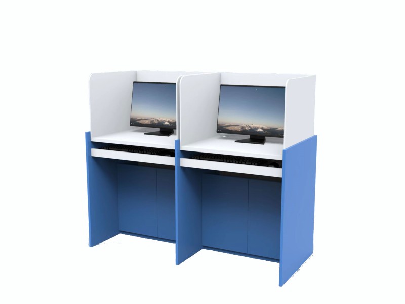 考试电脑桌,可用在语音室,多媒体教室,计算机教室、实训室、培训室,多功能教室、考试教室、语音教室、四六级教室,桌面安装挡板,防止学生考试作弊,安装挡板后桌子总高度1000-1400mm(可根据需求定制)。
